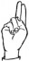 На ћирилици написано СОФИЈА КЛИНЦОВ састоји се из 13 слова [?]. Исписано ћириличном једноручном азбуком за глувонеме: